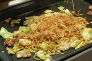 具材/焼きそば2玉、キャベツ50g、豚バラ、海老、三晃とんかつソース